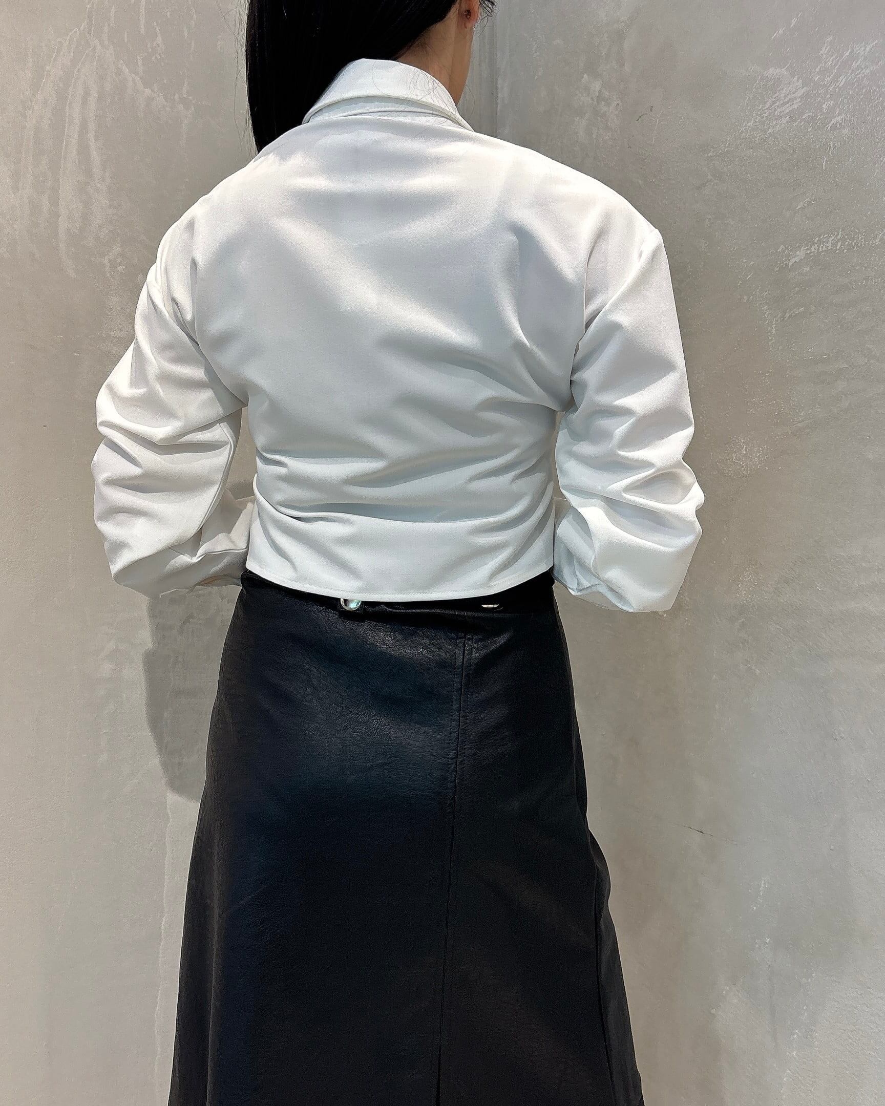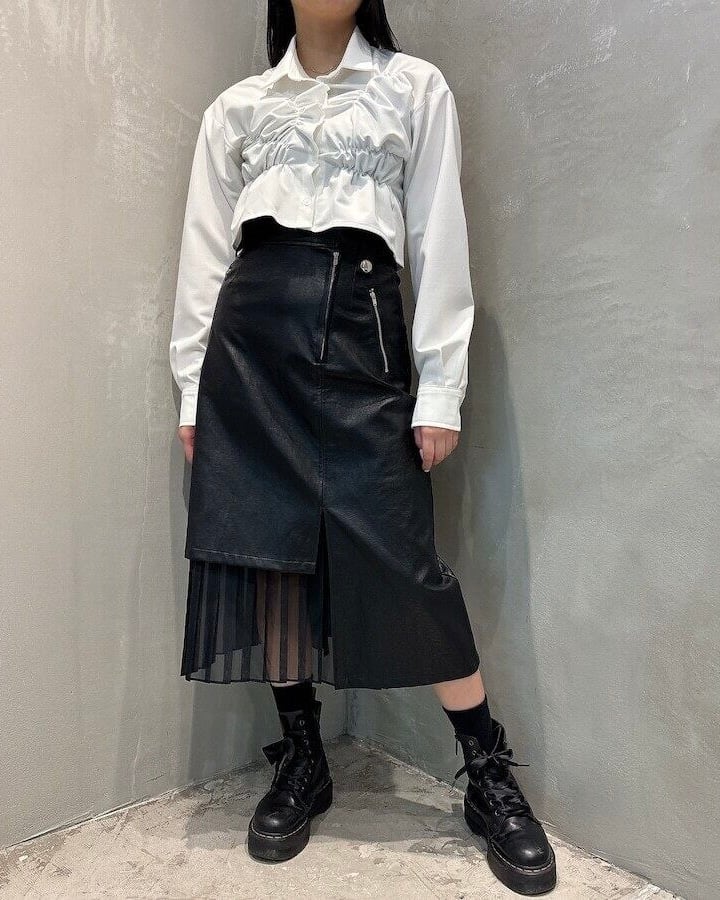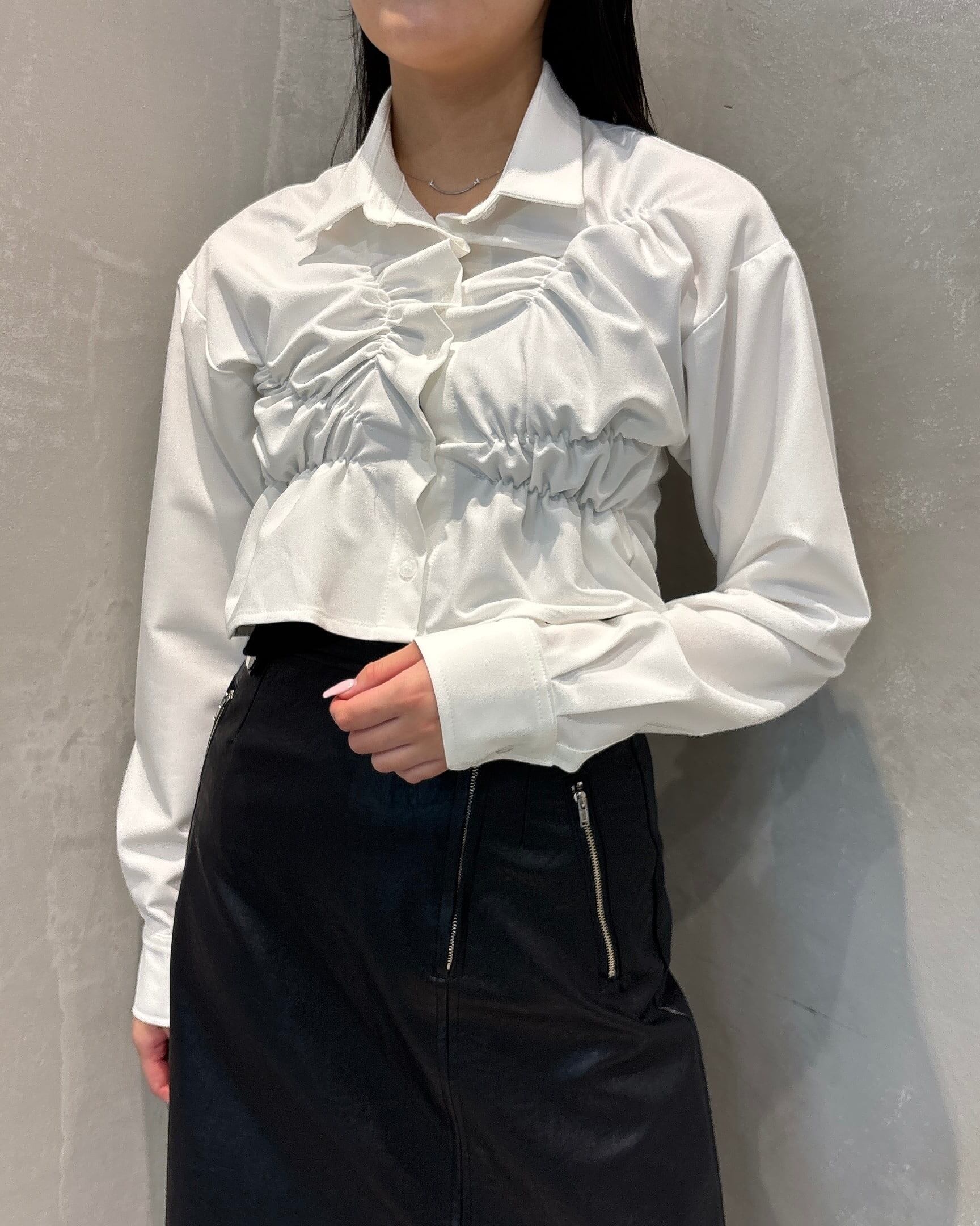 フロントにギャザーの寄ったデザインが特徴のシャツ