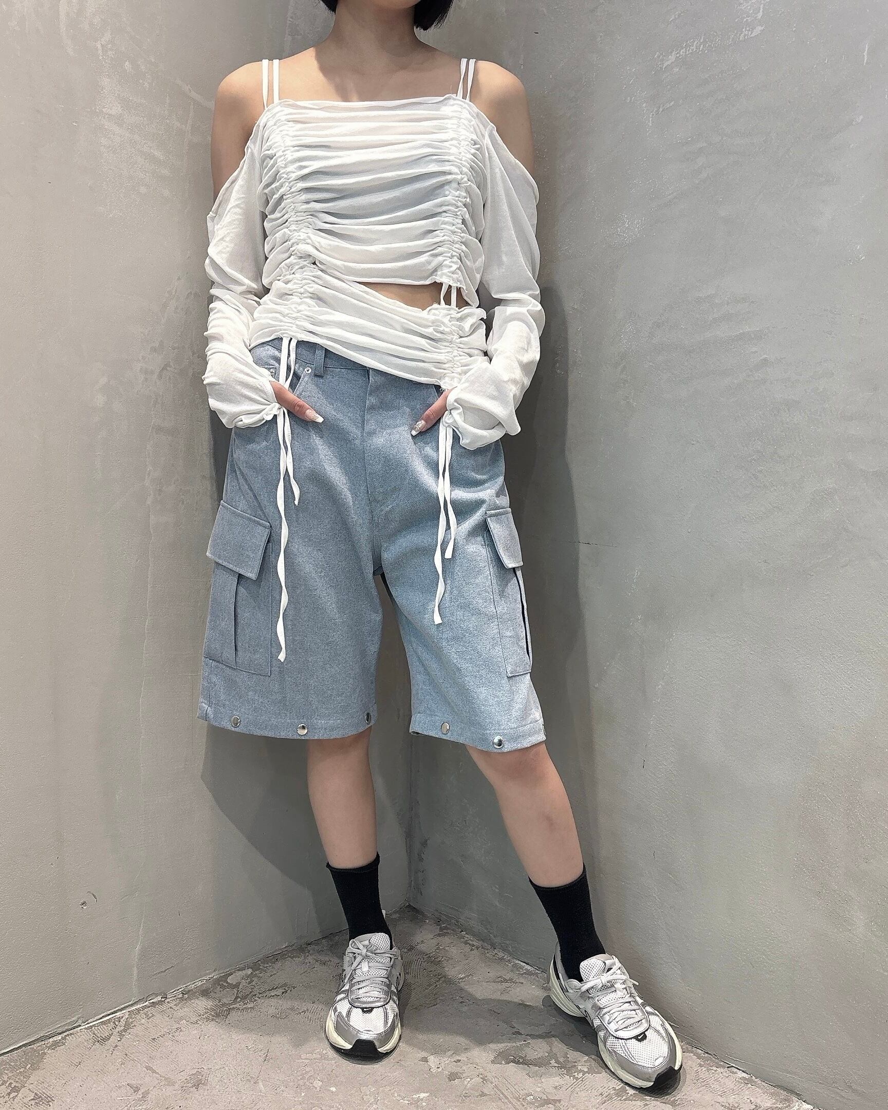 ロング、ハーフ2wayで着用可能なデニムパンツ