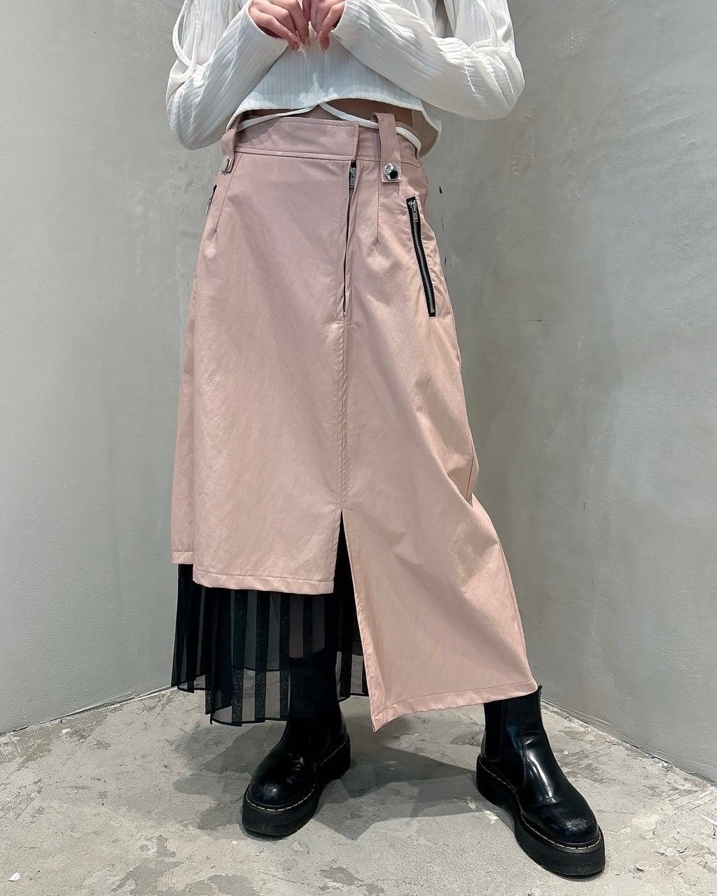 プリーツがレイヤードされたアシンメトリー
