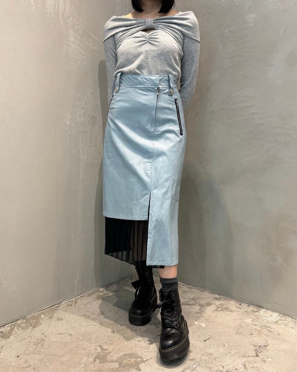 フェイクレザーを使用したタイトスカート