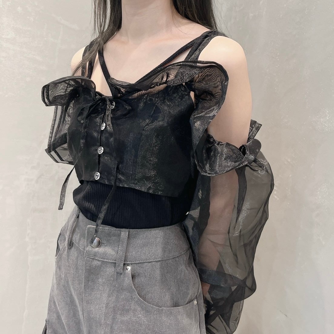オーガンジーフリルアームビスチェ