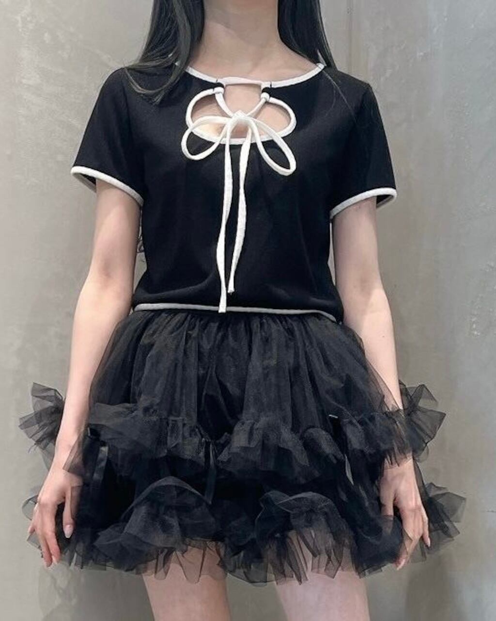 胸元のリボンは輸っかを作るように緩く結んでください。
