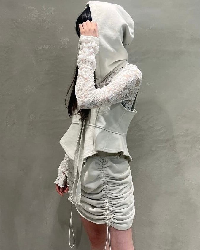 ウエスト(ゴム)60cm、スカ一ト丈63,5cm