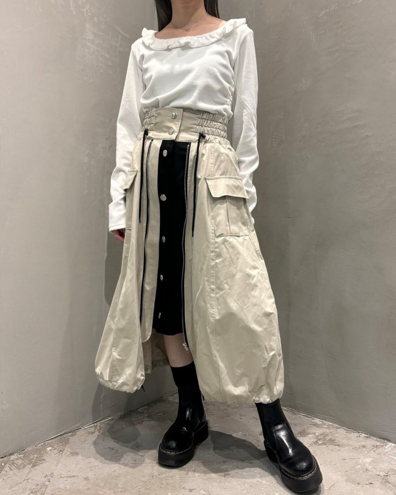 内側と外側の素材とのコントラストが可愛いポイント。