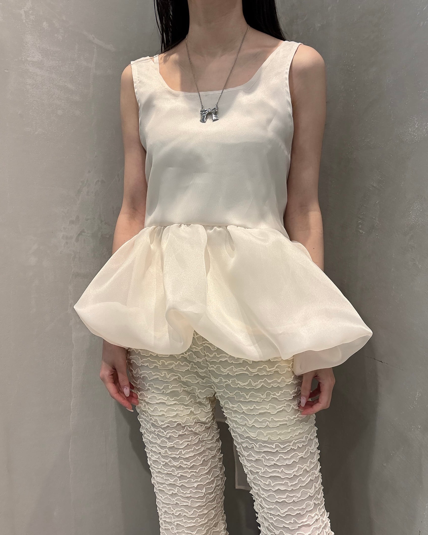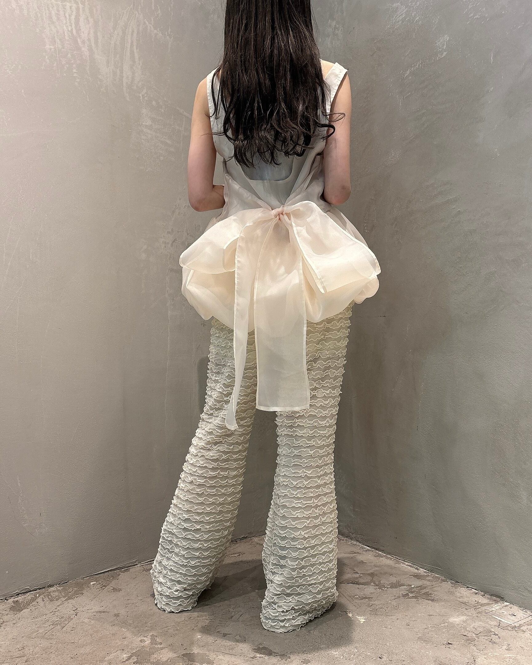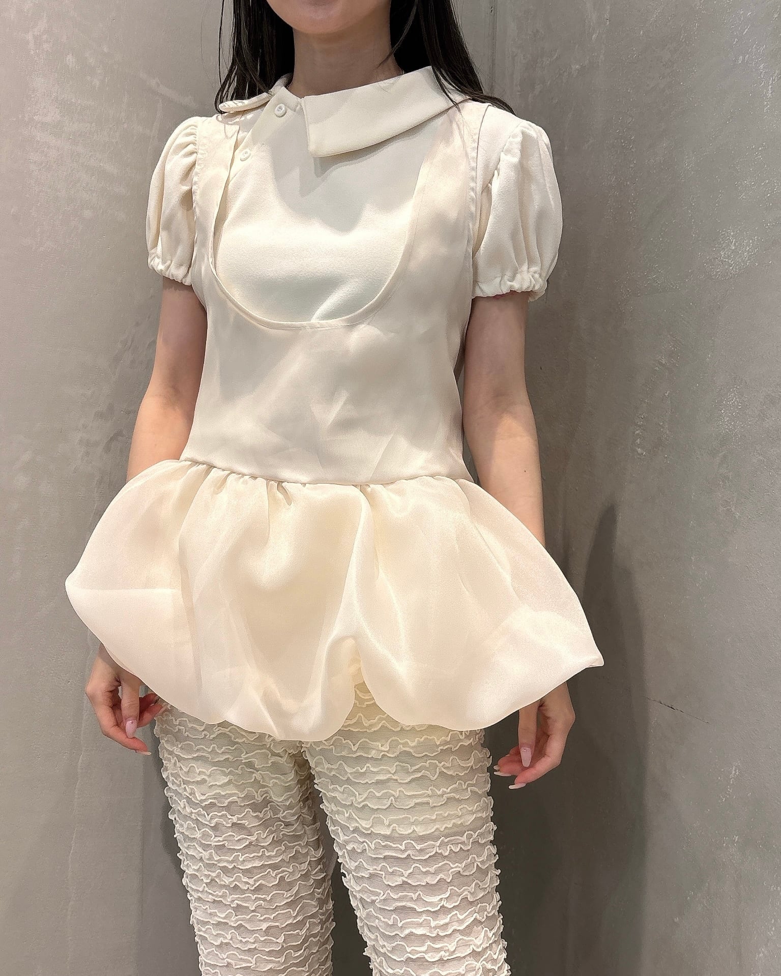 パンツ合わせで大人っぽくもミニボトムと合わせて甘くも着れるアイテムです。