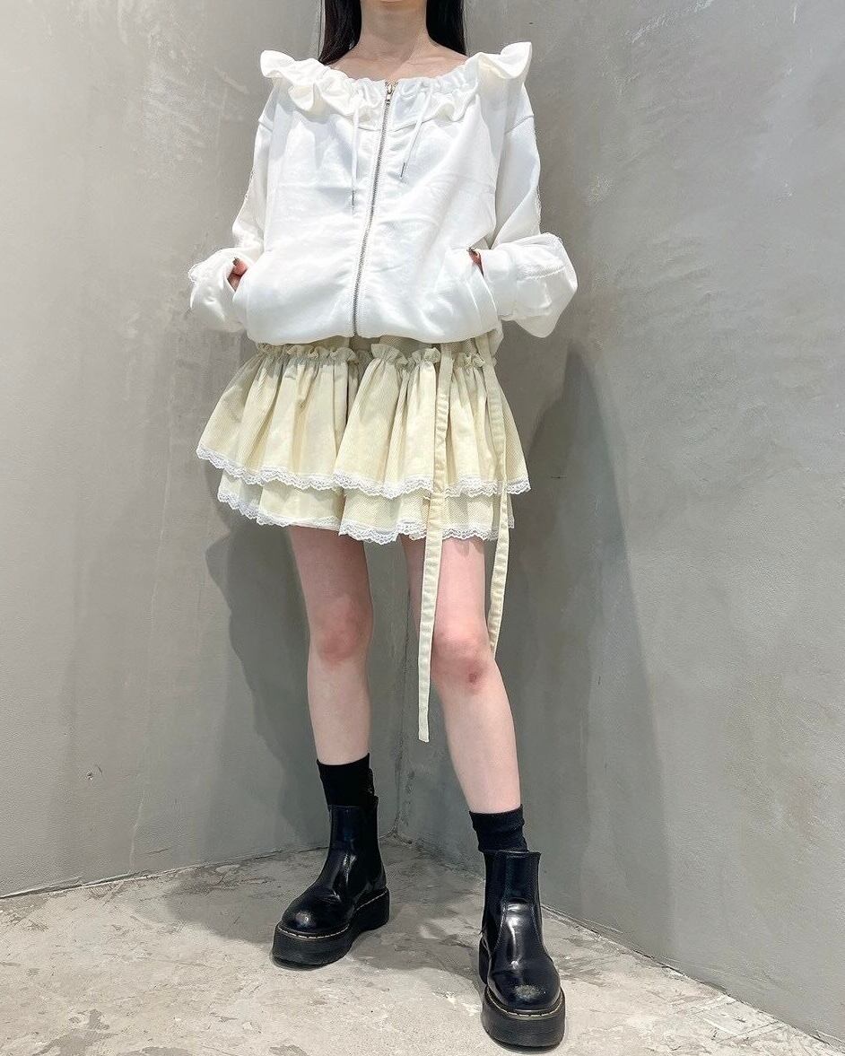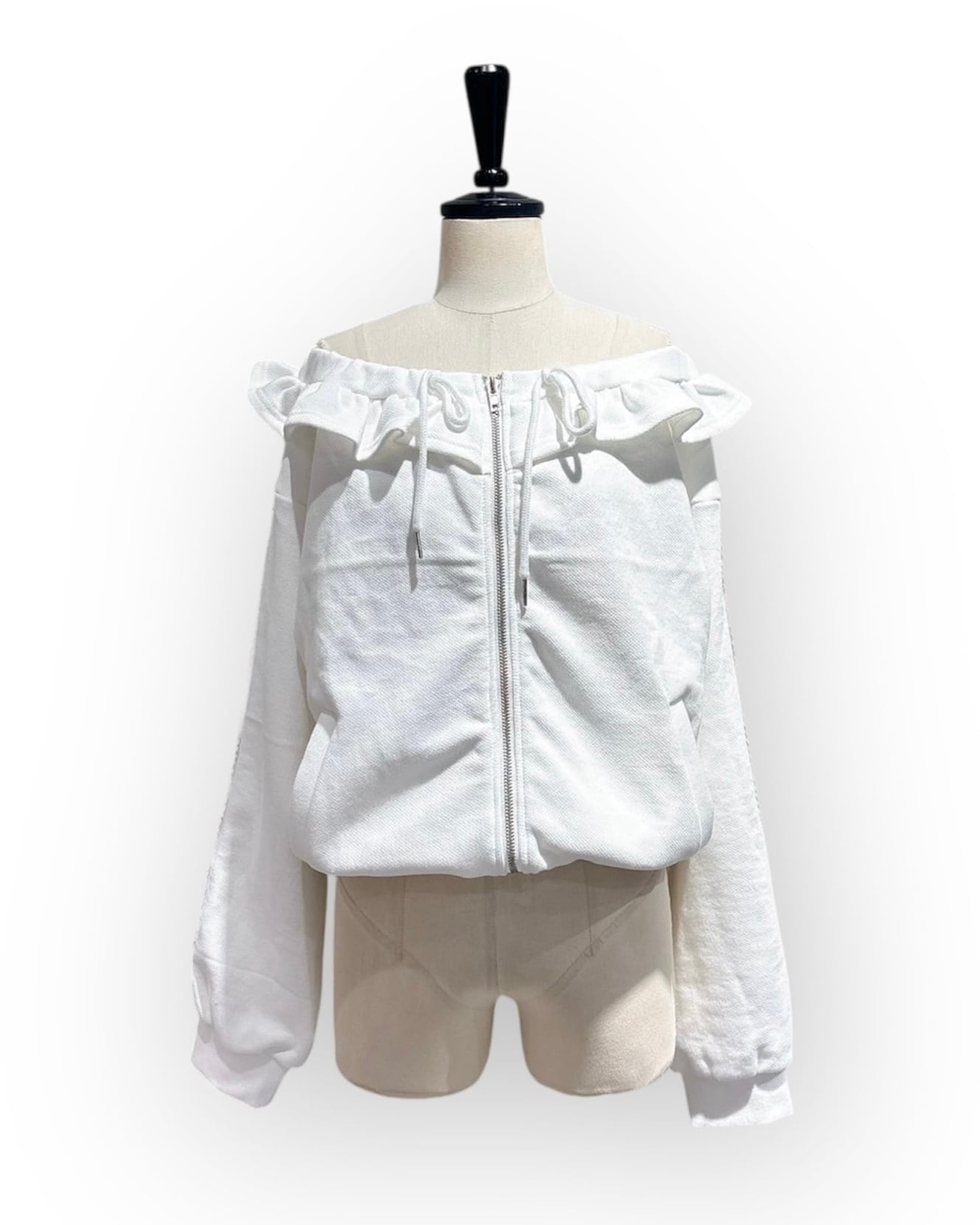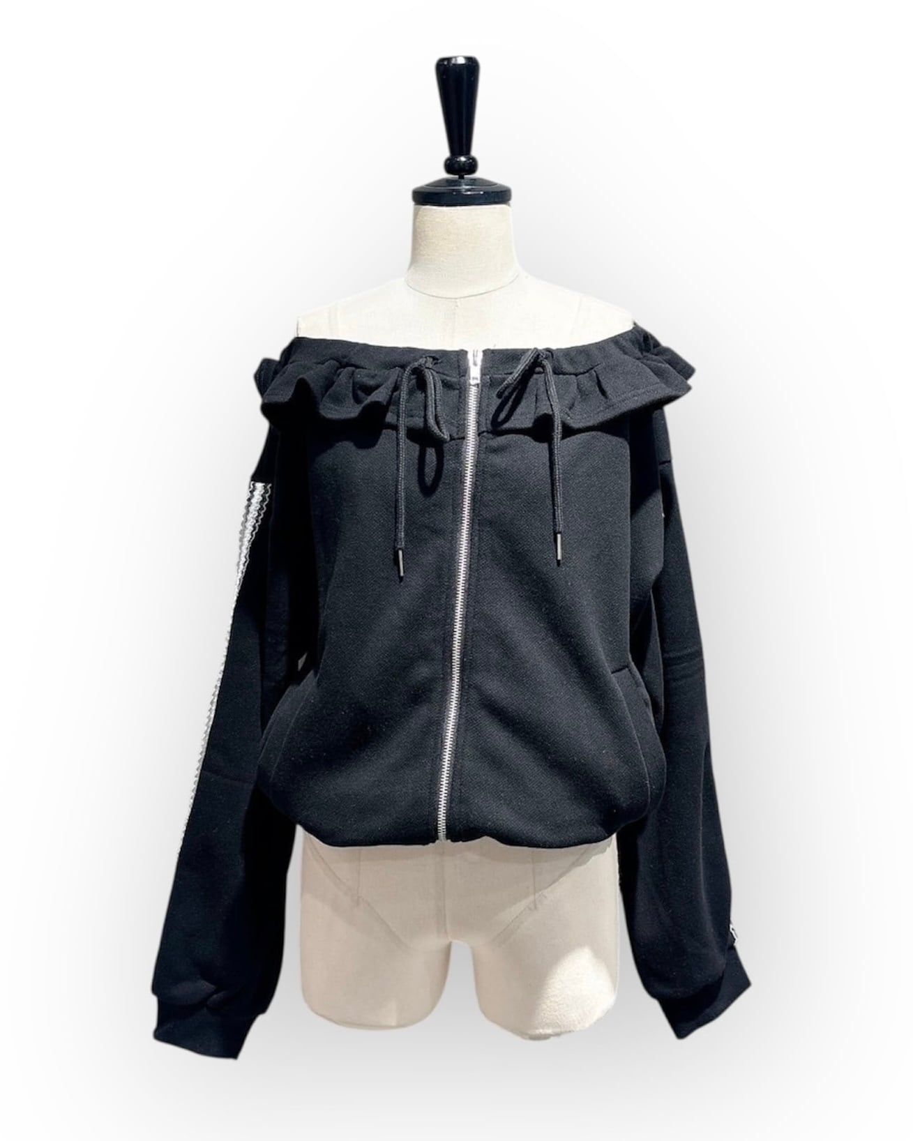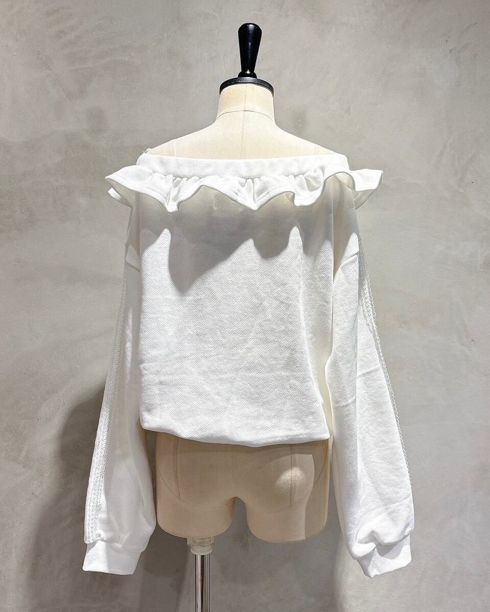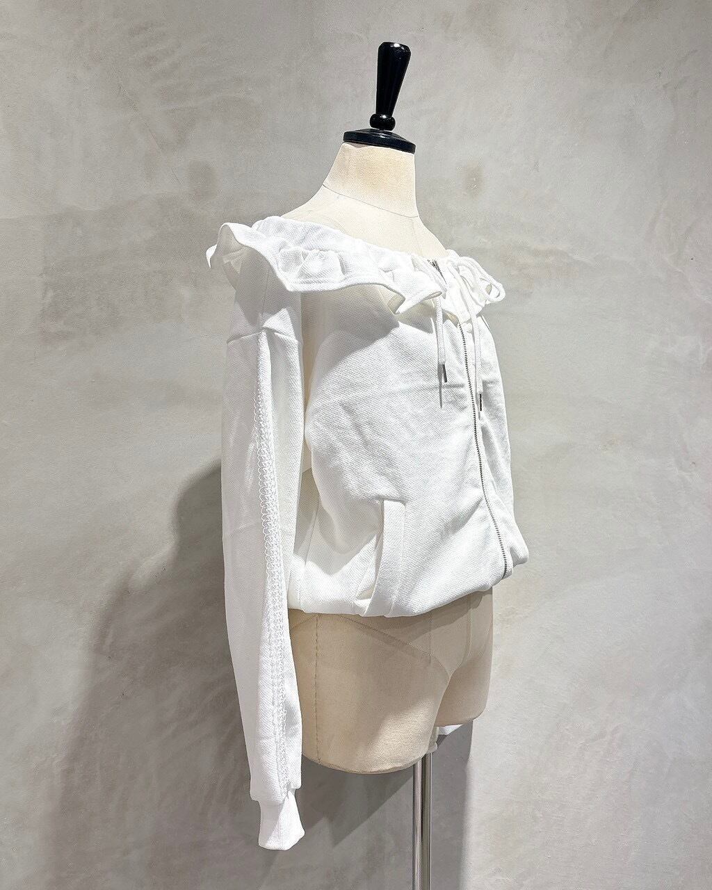 オフショルダーフリルパーカー