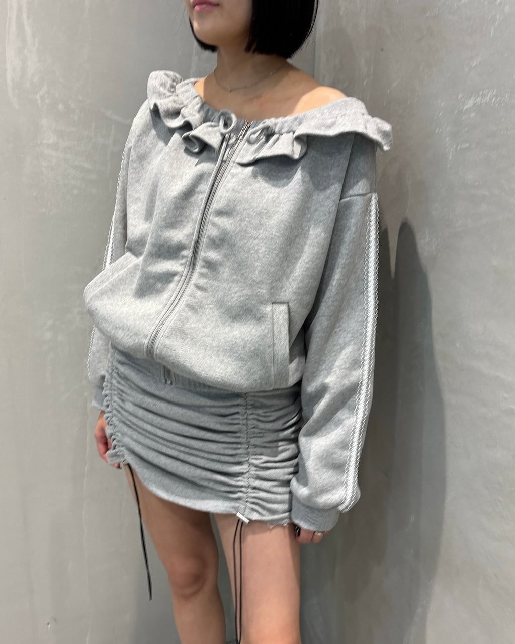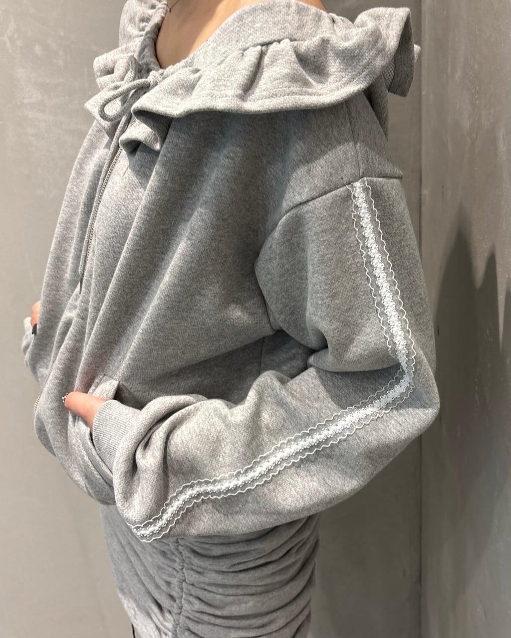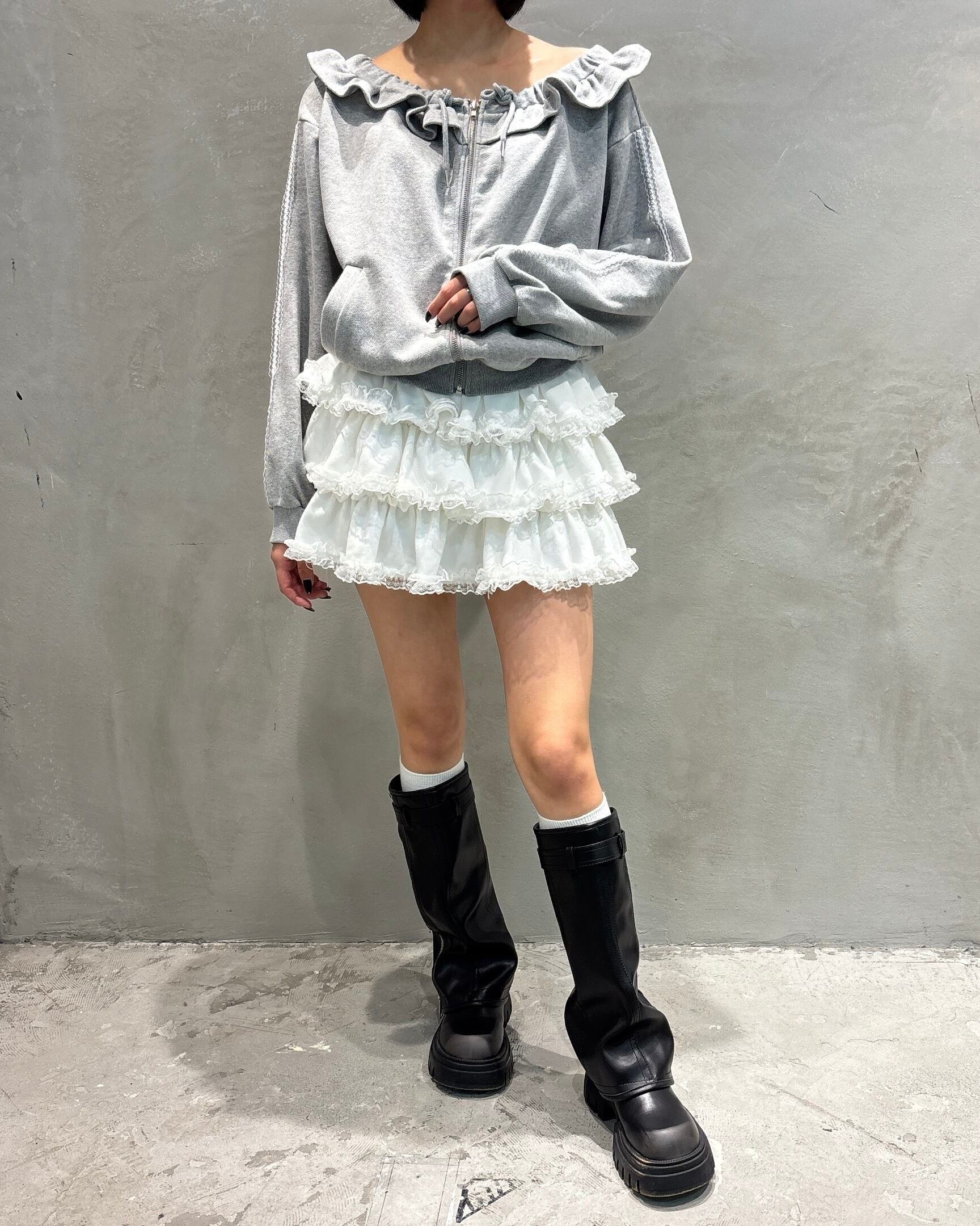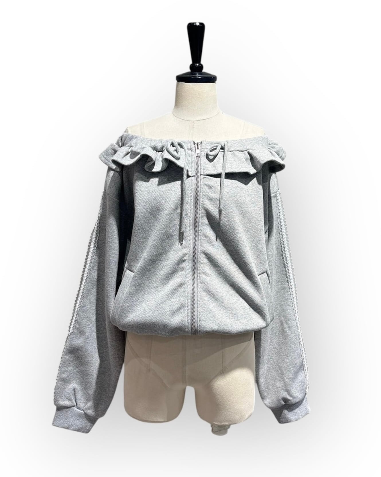 オフショルダーフリルパーカー