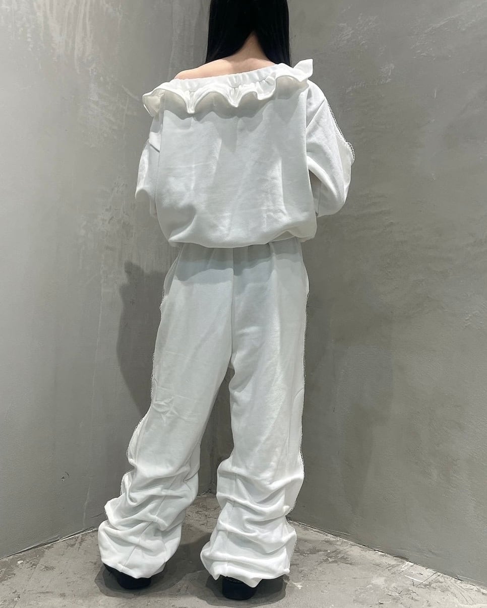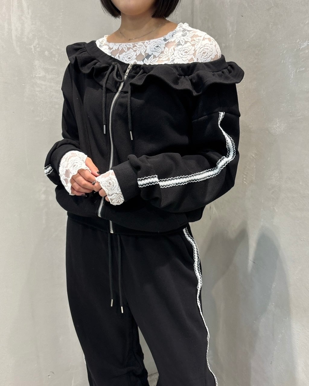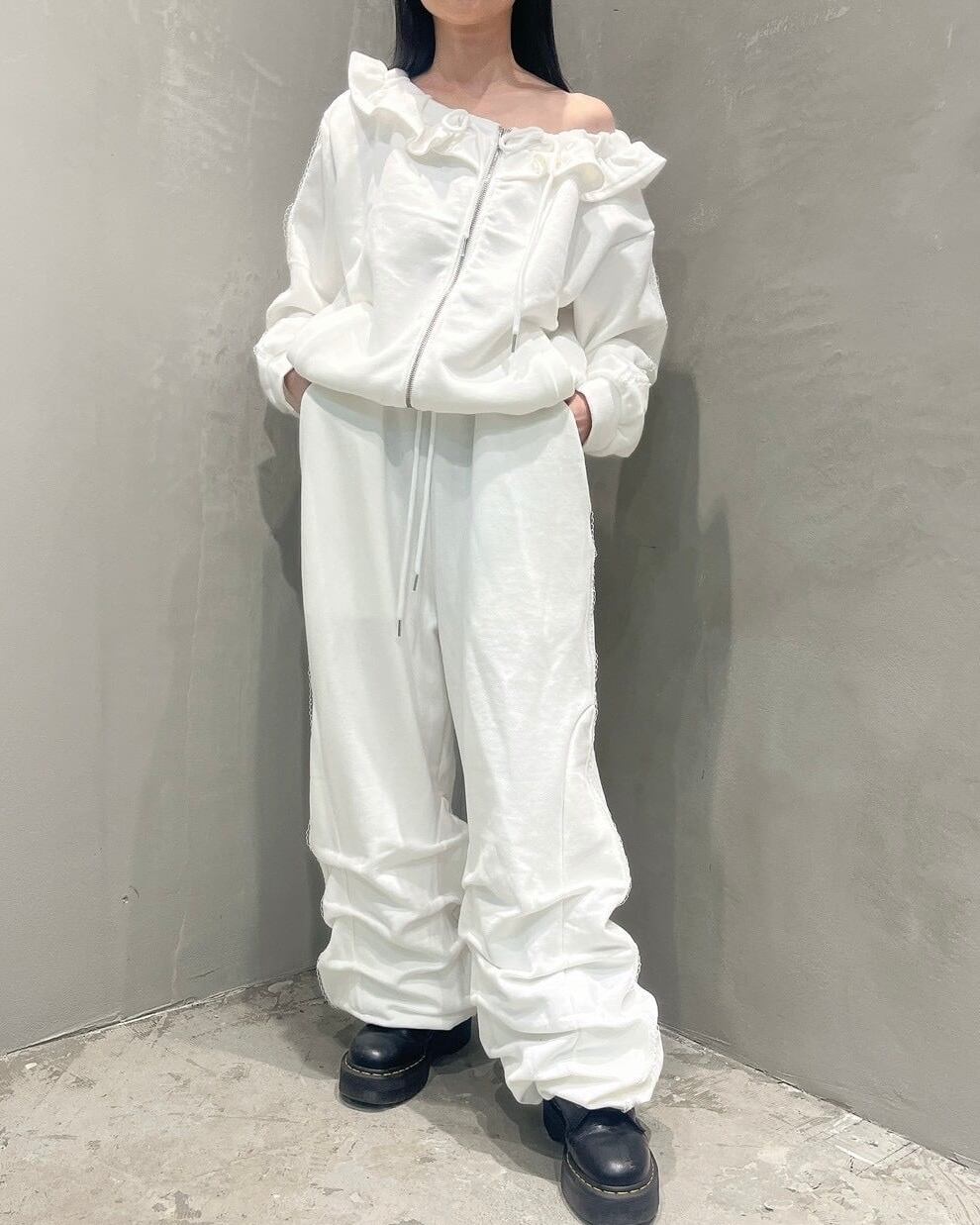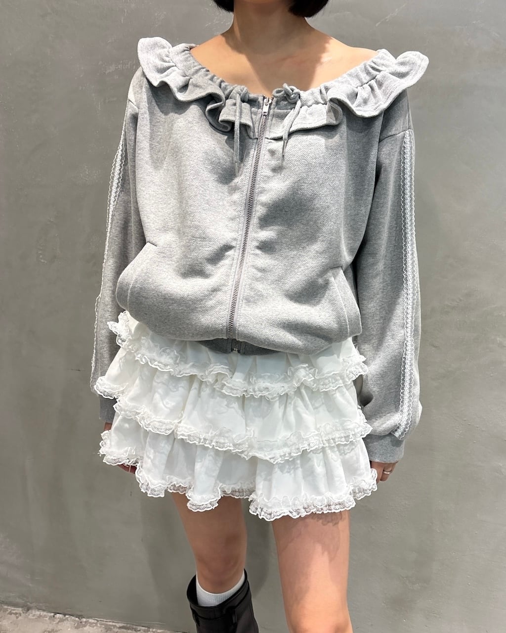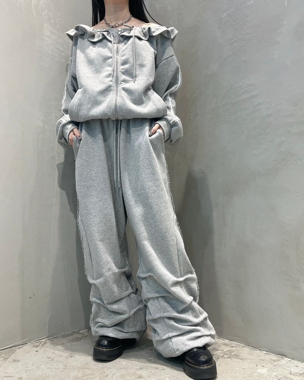 オフショルダーフリルパーカー