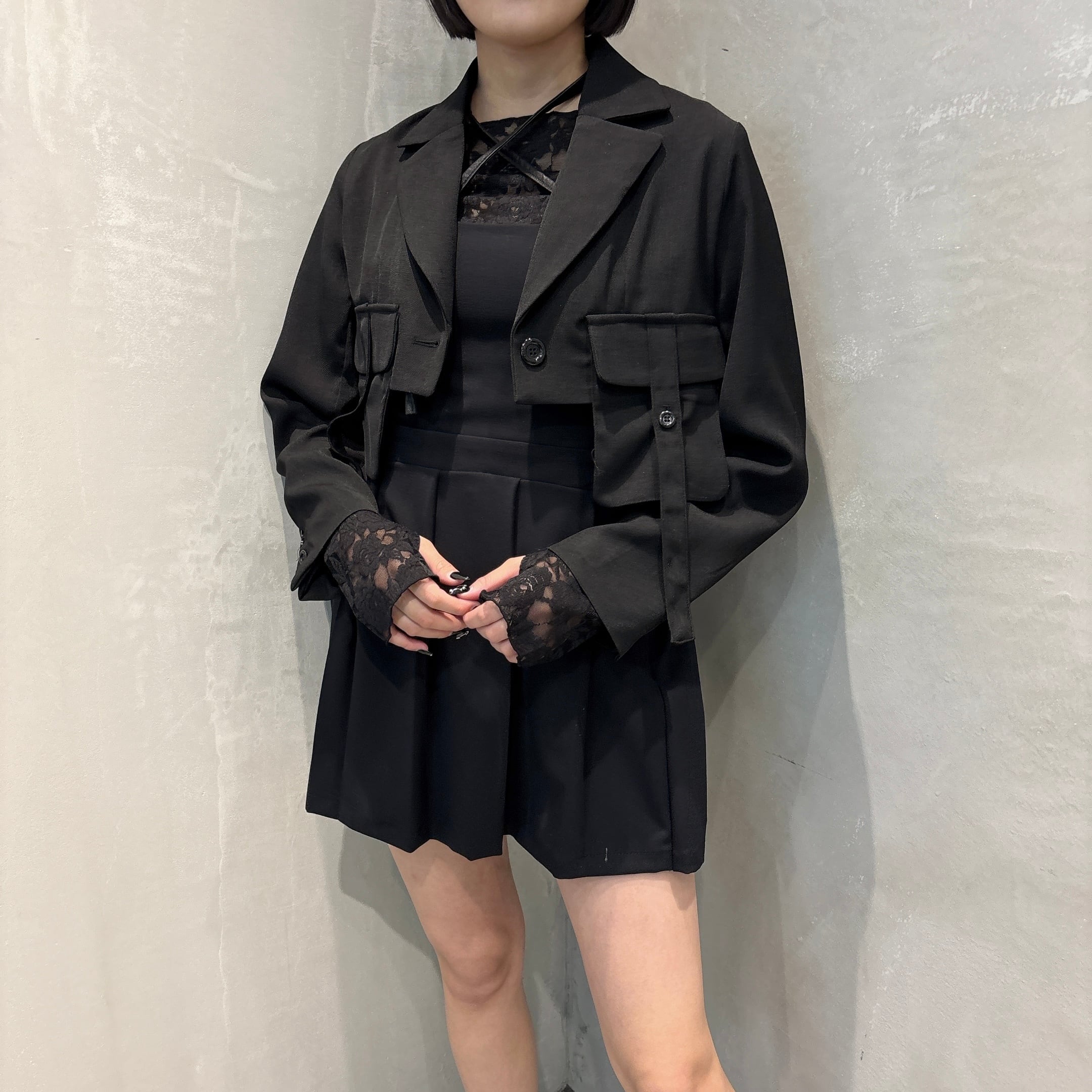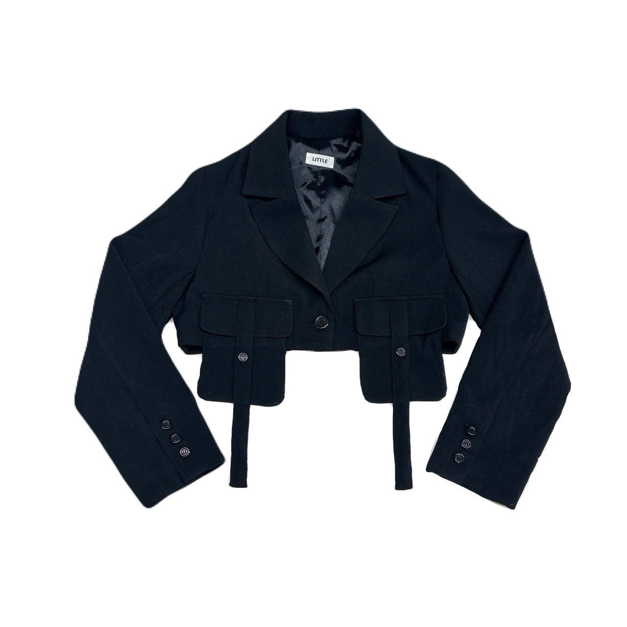 ポケットのデザインが特徴的なショート丈のジャケット。