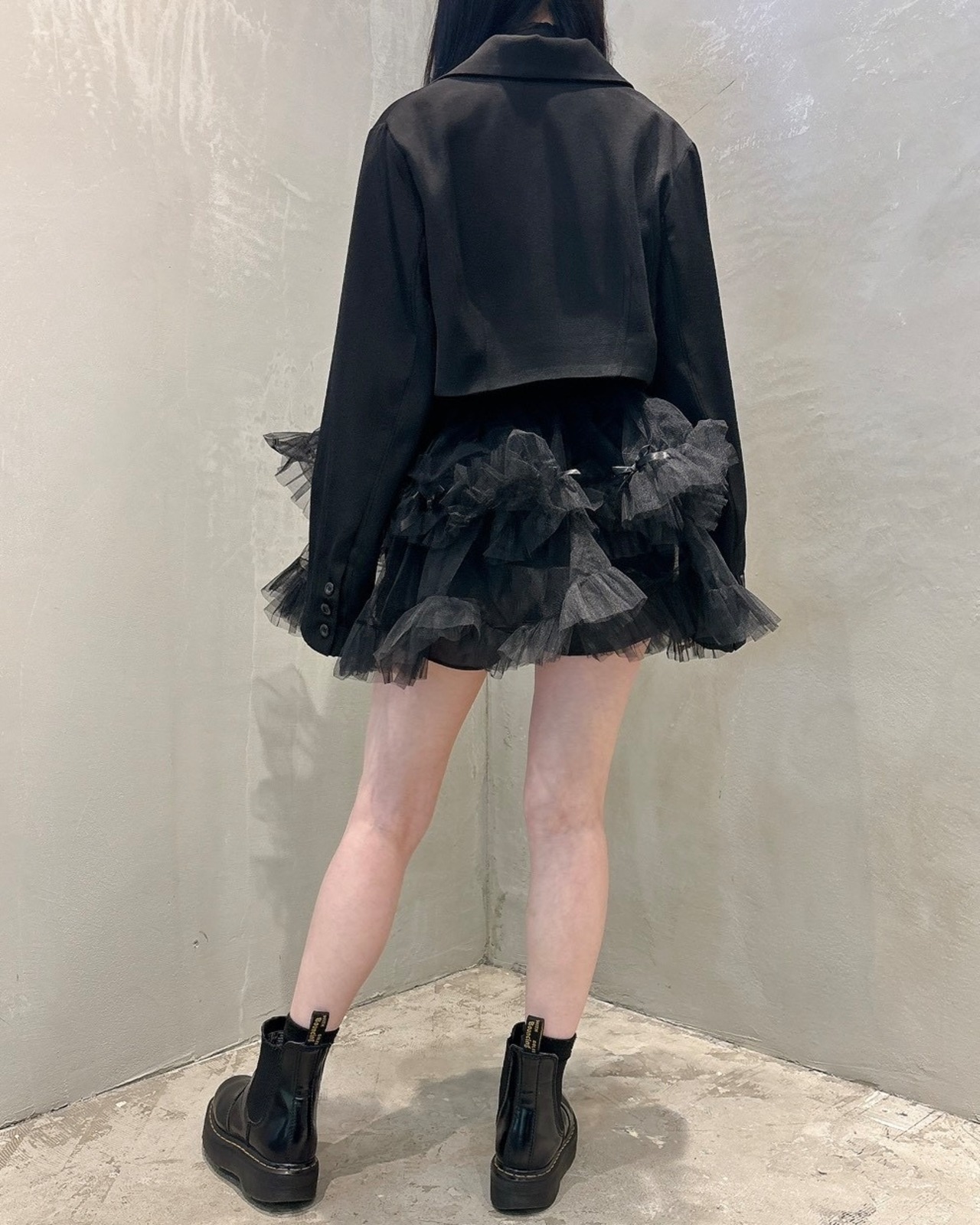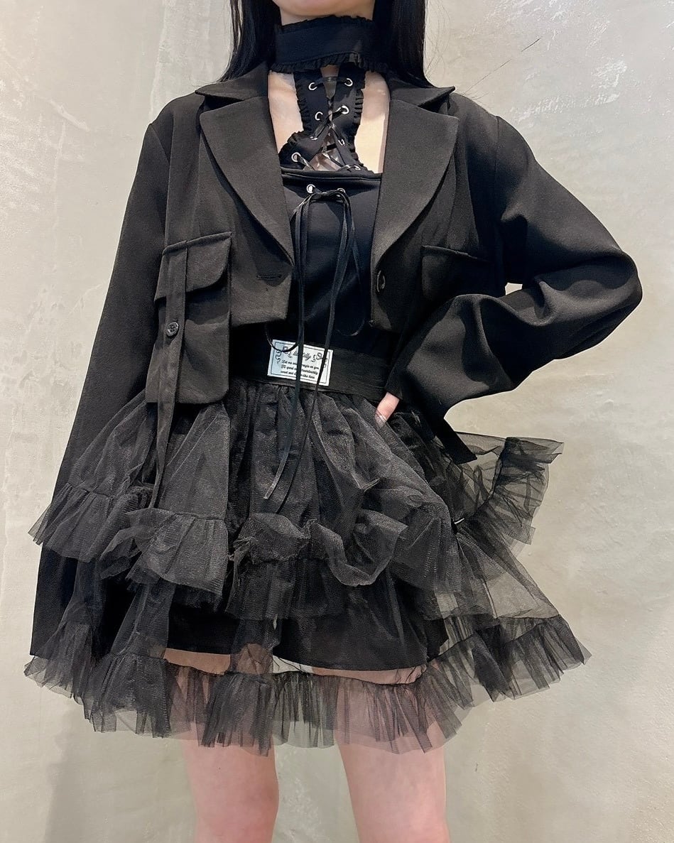 短丈でお作りしたのでインナーとレイヤードを楽しめます。