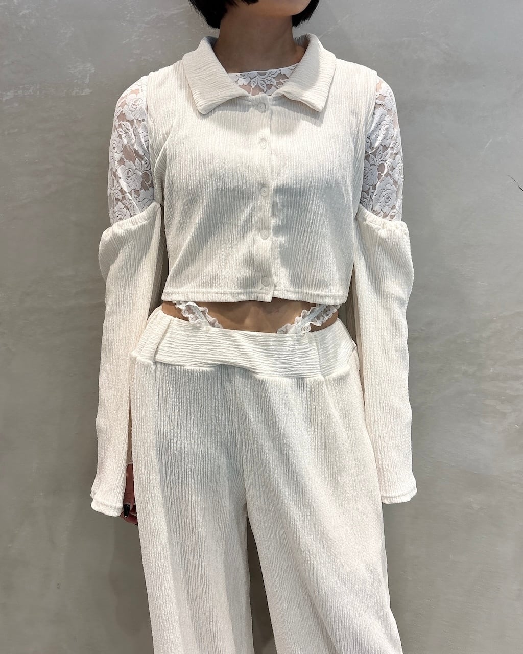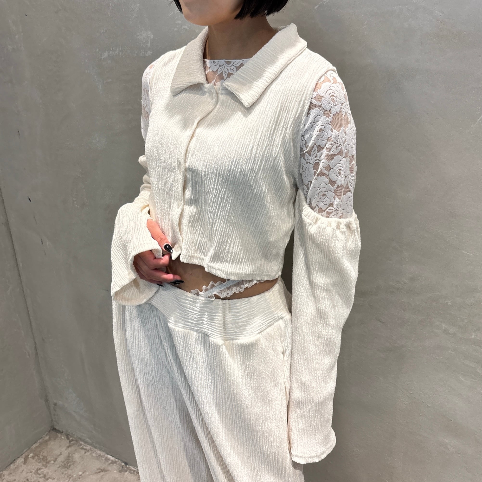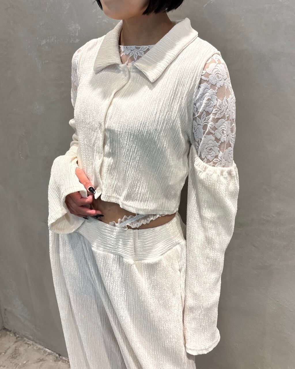 ショート丈、肩に開きがあるのでレースのインナー合わせも可愛い1着