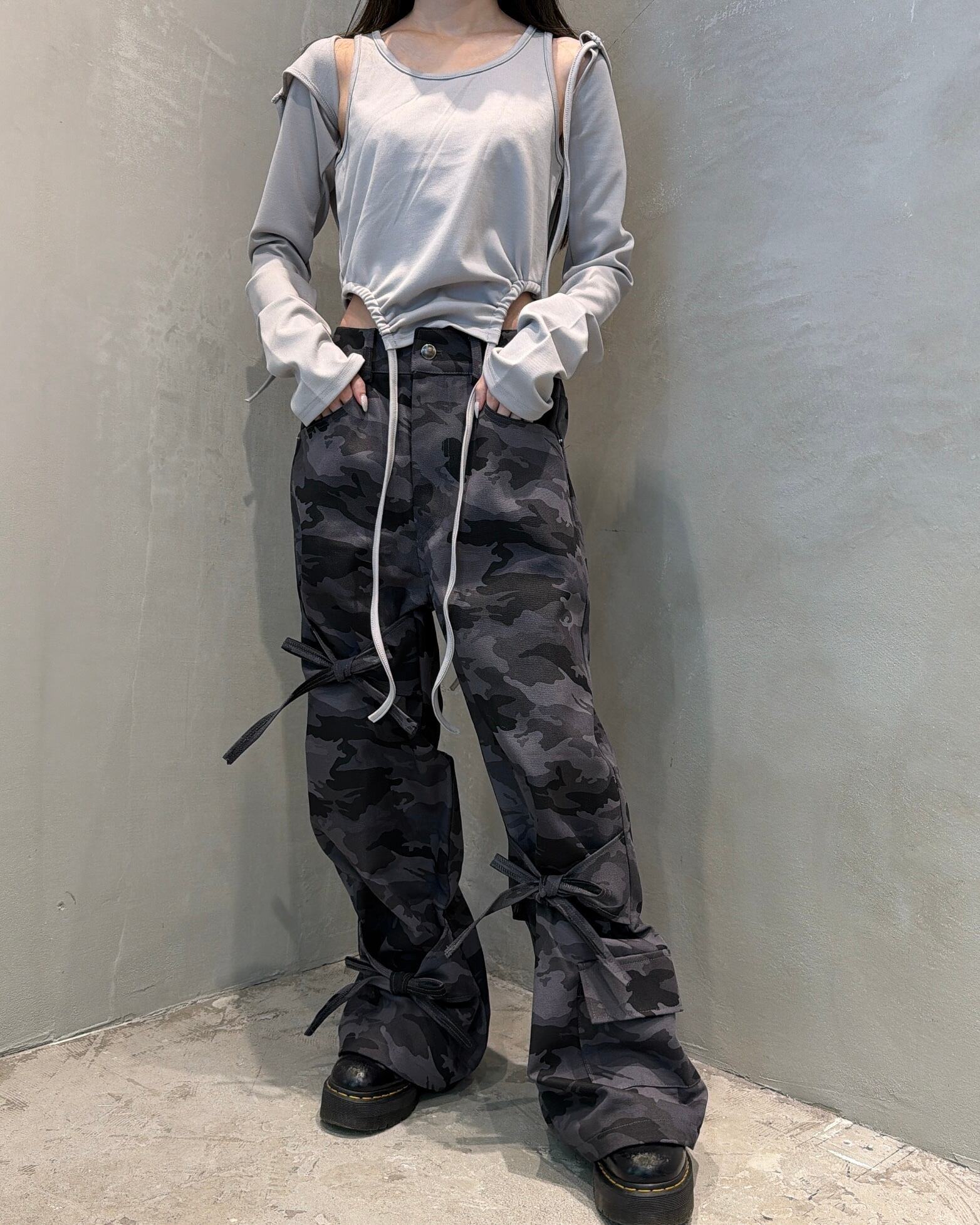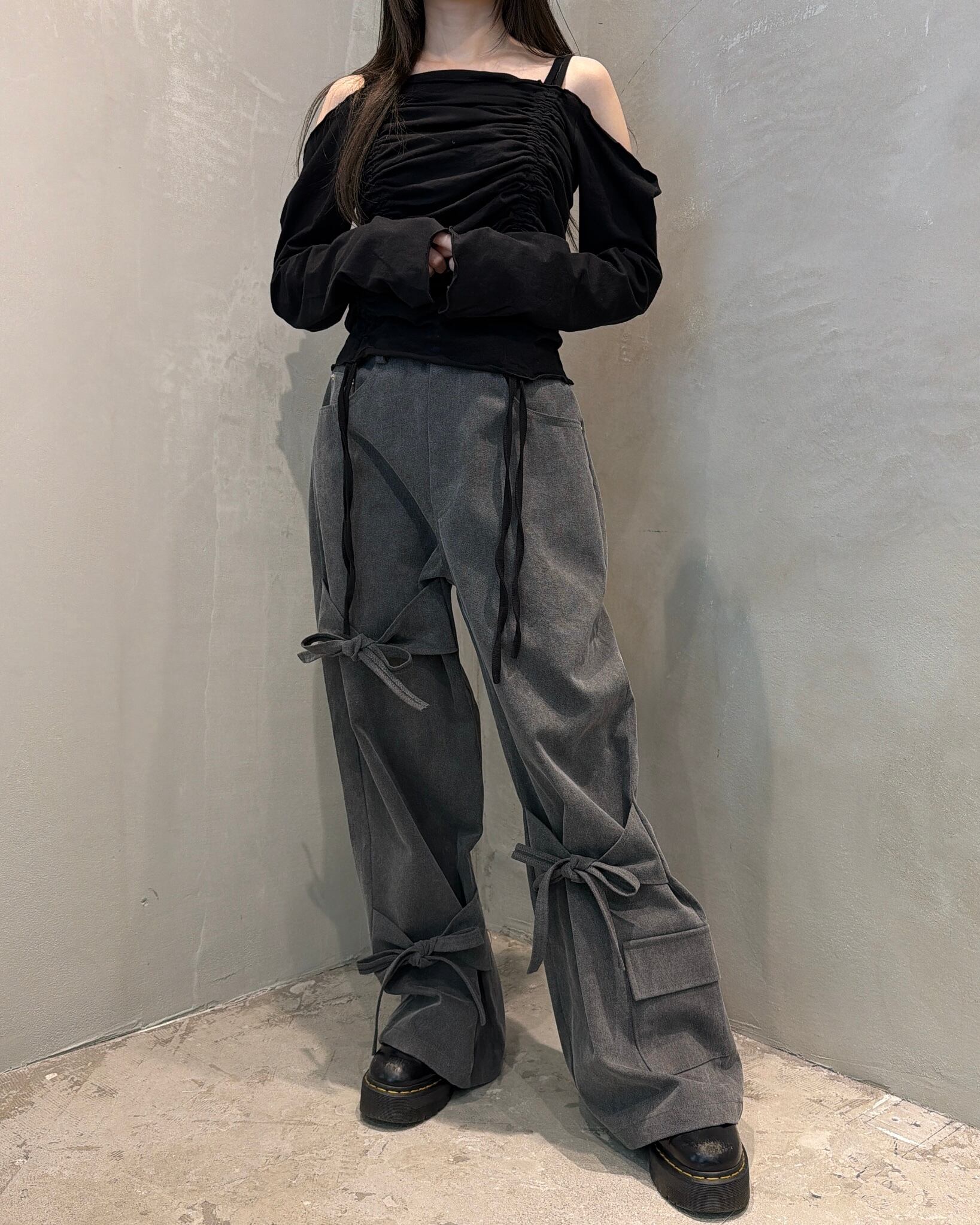 膝・裾に施されたリボンでシルエットを自在に調整できます